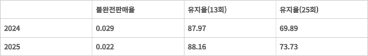 13회차 유지율은 87.97%에서 88.16%로 향상되면서 90%에 더욱 가까워졌다. 생명보험은 88.50%에서 88.68%, 손해보험은 87.24%에서 87.34%로 증가했다.