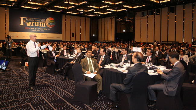 ▲국내 시장에서 가정용 ESS가 외면받고 있다. 가정용 ESS가 수평분산형 발전의 총아라는 측면에서 경제사회적인 장점을 제대로 살리지 못하고 있다. 사진은 작년 10월 방한해 강의하는 제레미 리프킨 <사진=산업부>