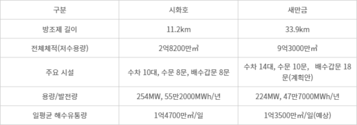 ▲시화호 및 새만금 조력발전 비교. 자료= 기후에너지환경부