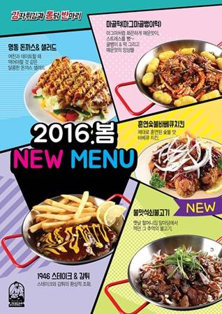 신메뉴 5종은 명동돈까스&샐러드, 마골떡(마그마골뱅이떡), 훈연숯불바베큐치킨, 1946 스테이크&감튀, 불맛석쇠불고기이며, 기존 치킨전문점에서 볼 수 없는 메뉴라서 벌써부터 반응이 뜨겁다.