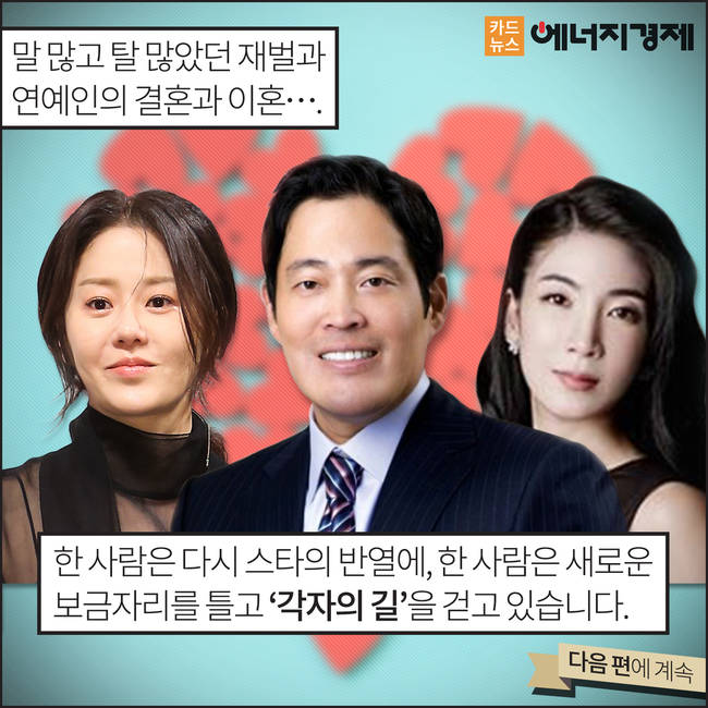 말 많고 탈 많았던 재벌과 연예인의 결혼과 이혼… 한 사람은 다시 스타의 반열에, 한 사람은 새로운 보금자리를 틀고 각자의 길을 걷고 있습니다.