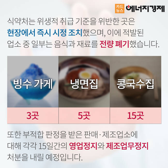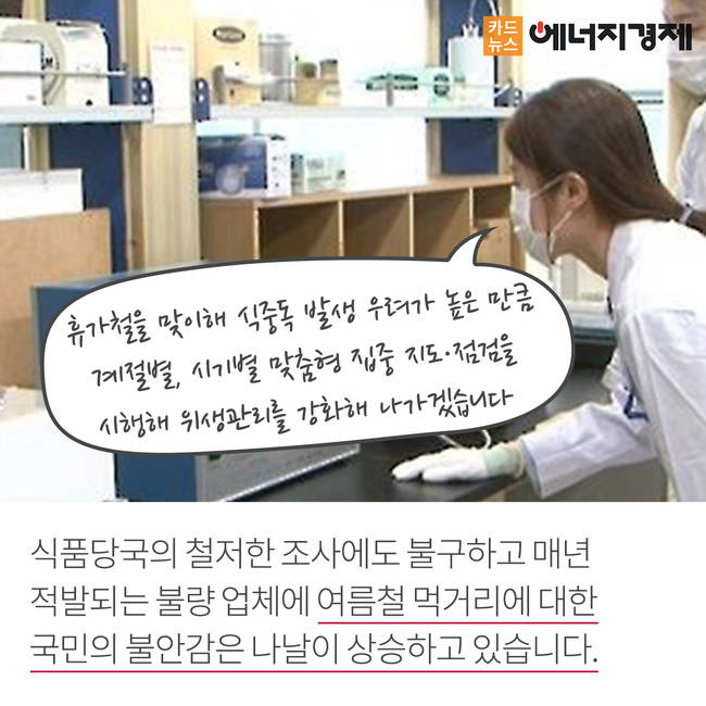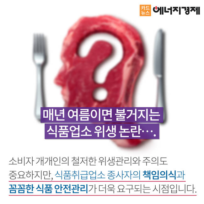 식약처의 철저한 조사에도 불구하고 매년 여름이면 불거지는 식품업소 위생 논란. 소비자 개개인의 철저한 위생관리와 주의도 중요하지만, 식품취급업소 종사자의 책임의식과 꼼꼼한 식품 안전관리가 더욱 요구되는 시점입니다.