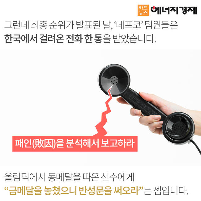 세계 3위라는 우수한 성적을 거뒀음에도 불구하고 정부 관계자는 "패인(敗因)을 분석해 보고해라"라고 연락한 것이 밝혀져 누리꾼은 실망감을 감추지 못하고 있습니다. 올림픽에서 동메달을 딴 선수에게 "왜 졌냐"고 묻는 셈이죠.
