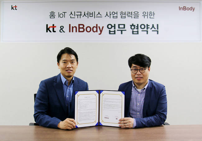 [에너지경제신문 이수일 기자] KT는 세계 최고 수준의 기술 역량을 보유한 체성분 분석 업체 인바디와 함께 홈IoT 사업모델 개발과 공동 마케팅을 위한 ‘KT-인바디, 홈IoT 신규서비스 사업협력을 위한 양해각서(MOU)’를 체결했다고 26일 밝혔다.