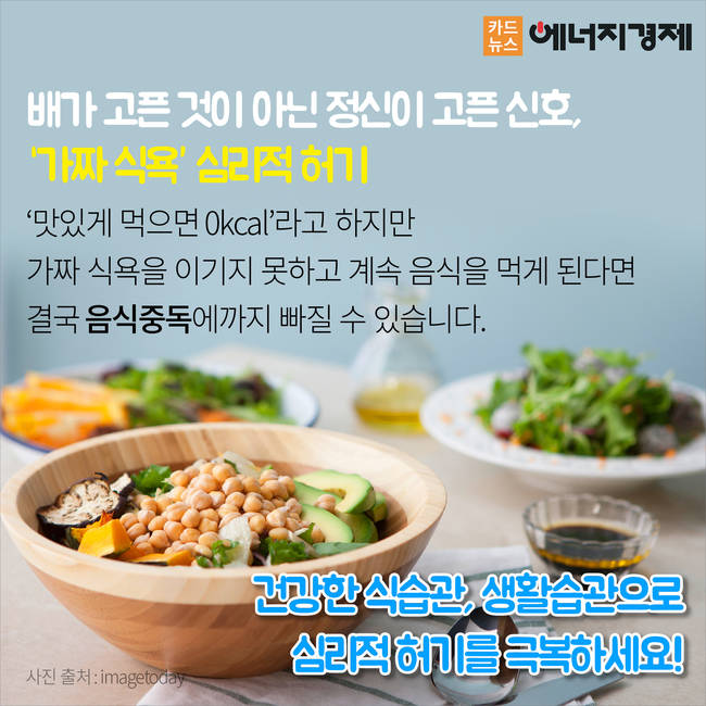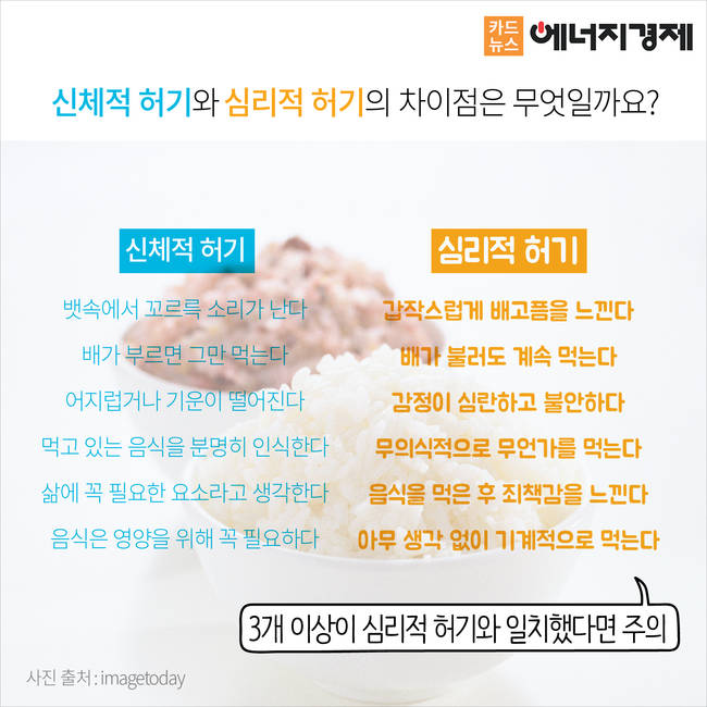 배가 고픈 것이 아닌 정신이 고픈 신호, ‘가짜 식욕심리적 허기. 가짜 식욕을 이기지 못하고 계속 음식을 먹게 된다면 결국 음식중독에까지 빠질 수 있습니다. 건강한 식습관, 생활습관으로 심리적 허기를 극복하세요!