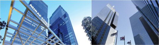 ▲미래에셋 센터원빌딩(사진 왼쪽)과 삼성 서초사옥.