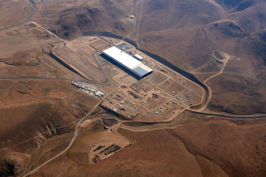▲테슬라가 미 네바다주에 건설 중인 리튬이온전지 공장 기가팩토리 전경.(사진=테슬라) |