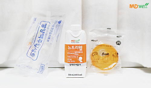 특히 환자용 식품 중 입으로 식사할 수 없는 환자를 위해 튜브를 통해 소화기에 유동식을 주입하는 경관 영양식은 위생 관리가 더욱 중요하다. ‘엠디웰’의 ‘뉴트리웰 RTH’는 일회용 경관 영양식으로 오염과 감염을 최소화하며 단시간 열처리 후 멸균 상태에서 제품을 충전하는 Aseptic Filling법으로 파괴되는 영양소를 줄여 균형적인 영양성분과 고열량을 제공한다.