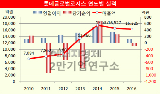 그러나 롯데그룹이 야심차게 인수한 현대로지스틱스의 지난해 실적은 그다지 좋지 못했다.