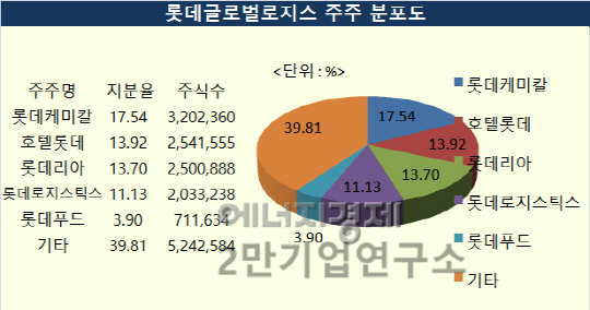 롯데그룹은 지난해 롯데케미칼, 호텔롯데, 롯데리아, 롯데로지스틱스, 롯데푸드 롯데쇼핑, 롯데제과, 롯데칠성음료 등 8개 계열사를 동원해 현대로지스틱스 지분 71%를 약 5000억원 상당에 사들이면서 주당 3만8088원을 지불했다.