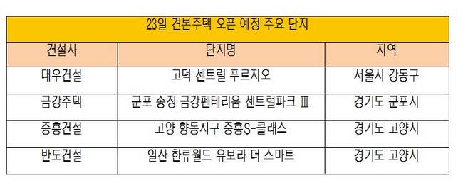 ◇ 23일 오픈 단지, 전매제한·대출 규제 비껴가