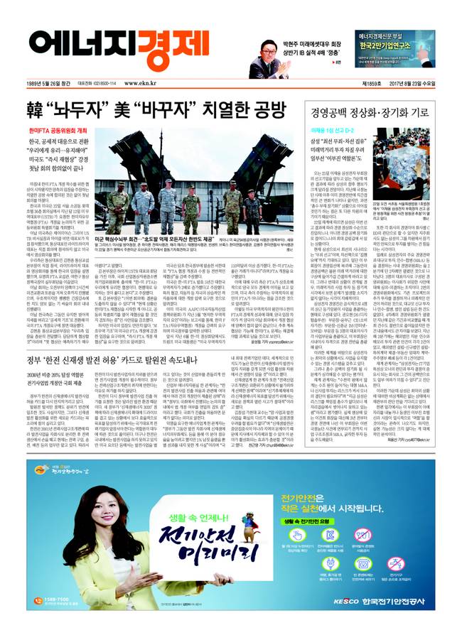 [에너지경제신문 오프라인] 먼저 만나는 에너지경제신문 헤드라인 - 8월 23일
