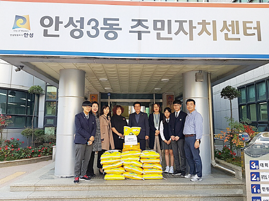 [안성=에너지경제신문 한철희 기자] 안성시 비룡중학교 학생자치회 및 학부모회에서는 10월 27일 안성3동 주민센터에 독거노인을 위한 사랑의 쌀(20kg, 16포)을 기부했다고 29일 밝혔다.