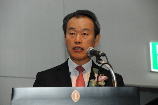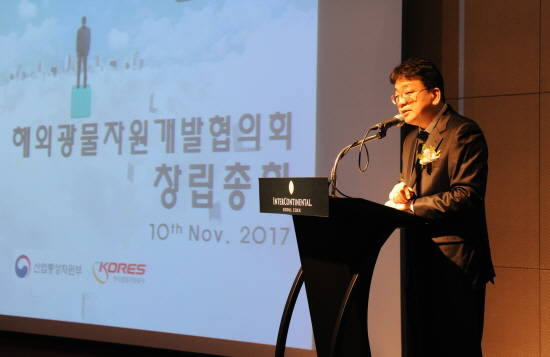 ▲10일 서울 삼성동 코엑스 인터콘티넨탈호텔에서 열린 ‘해외광물자원개발협의회 창립총회’에서 초대 회장에 선임된 김영민 광물자원공사 사장이 기념사를 하고 있다.