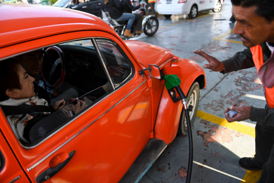 ▲지난 11월 30일 멕시코의 수도 멕시코시티에 위치한 국영 석유기업 페멕스 주유소에서 직원이 차량에 휘발유를 넣고 있다. 기사 내용과 관련 없는 사진.(사진=AFP/연합)