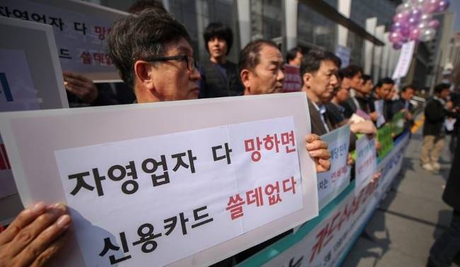자영업자들은 연 매출액이 5억원을 넘지만, 손에 쥐는 돈이 적은 '빛 좋은 개살구'인 경우가 많다며 카드 수수료 인하 필요성을 제기하고 있다. 겉으로는 많은 돈을 버는 것 같지만, 프랜차이즈를 유지하기 위한 각종 비용, 직원 월급 등을 빼면 남는 게 없다는 것이다.