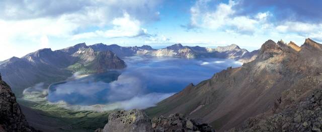 ▲남북한 간 과학기술 분야 협력을 위해 백두산에 ‘남북 공동연구센터’를 세우자는 제안이 제기돼 주목을 끈다.사진은 백두산 천지 전경. |