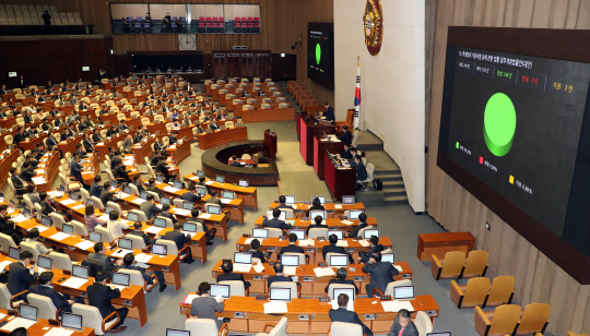 ▲29일 국회에서 특정범죄 가중처벌 등에 관한 법률 일부개정법률안, 이른바 윤창호 법이 제364회 국회 제13차 본회의를 통과하고 있다 |