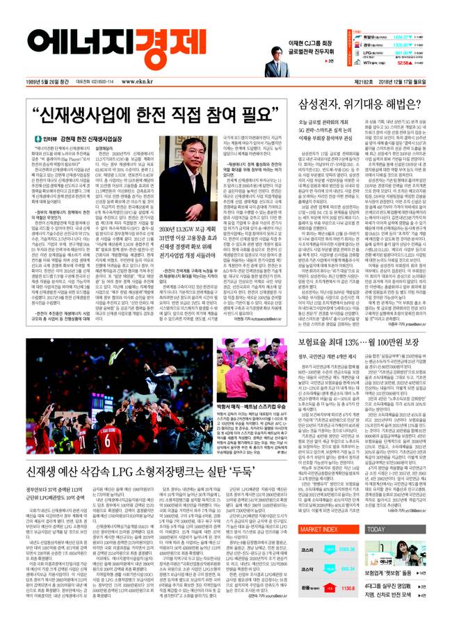 [에너지경제신문 박성준 기자] ‘에너지경제’ 지면, 다음은 12월 17일 월요일 ‘에너지경제신문’ 지면이다.