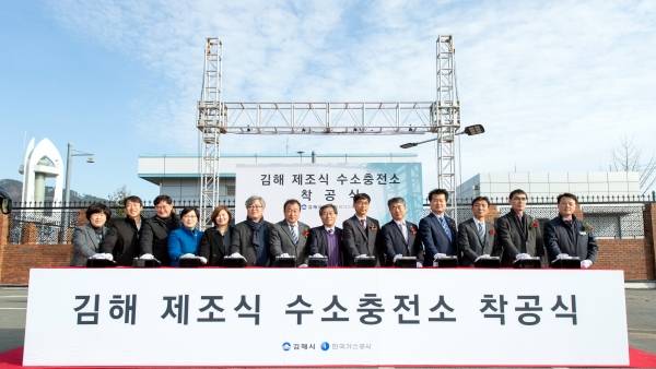 ▲한국가스공사가 지난 16일 경남 김해에서 수소충전소를 착공했다. (사진=가스공사) |