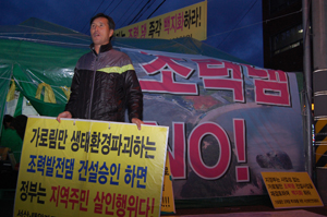 박 계장은 “2007년 12월 해양수산부 전문 용역 결과에 의하면 가로림만은 환경비용을 포함하면 경제성이 없다는 결과가 나왔다”며 “환경을 파괴하는 조력발전이 과연 기후변화협약의 취지에 맞는 신재생에너지인지 생각해볼 문제”라며 격앙된 목소리로 이야기 했다.