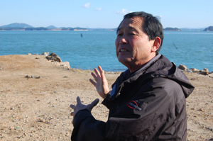 차를 타고 기자와 동행한 이평주 서산태안환경운동연합 상근의장은 “조개널섬이라는 곳은 한 때 어부들이 조개가 너무 많이 잡혀 거기에 널어둔 것에서 유래됐다”며 태안의 과거와 현재를 이야기 했다. 도착한 그 곳은 조력발전소 사업예정지역이 한 눈에 보였고 예정지는 총 2km이어서 긴 편이 아니었다. 작은 돌섬으로 둘러진 만의 모습은 마치 아이를 안은 어머니처럼 포근해 보였다.